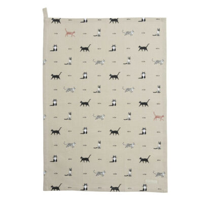 Ein schönes Geschirrtuch ist mit schwarzen, getigerten, schwarz-weißen, siamesischen und Ingwerkatzen auf einem Weizenbeige-Hintergrund. Es ist perfekt in jeder Küche und macht das Austrocknen viel angenehmer. Es könnte das nächste schöne Geschenk für den Katzenliebhaber sein.